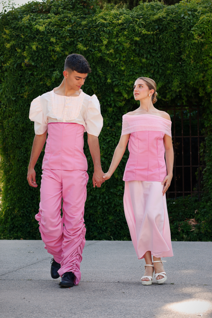 Cada año de la carrera desarrollamos una serie de proyectos que llevamos a la realidad desde la idea inicial. Comenzamos con el proceso de dibujo y diseño, continuamos con el patronaje y finalizamos con la confección, dando vida a cada una de nuestras creaciones. Estos son los dos últimos que realizamos